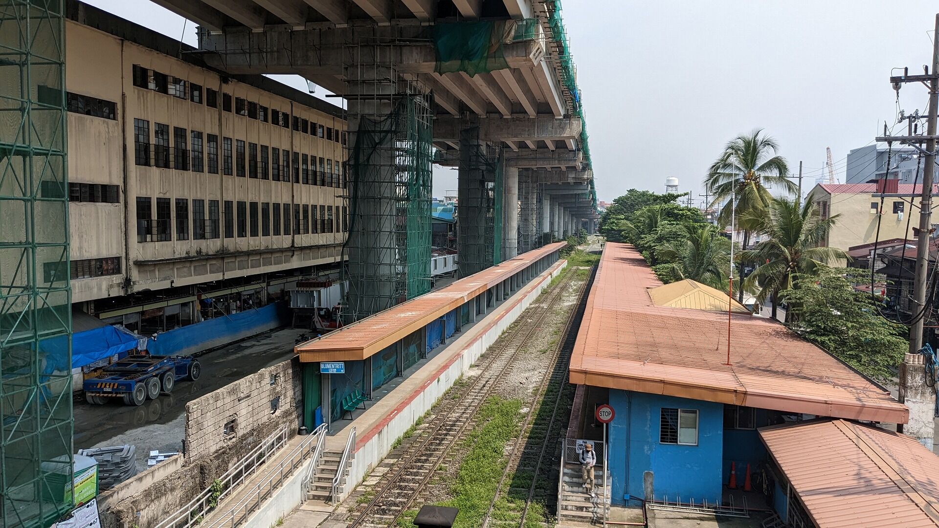 マニラでは南北通勤鉄道の工事が進んでいます。在来線の土地でそのまま高架化するようで、工事の土地を確保するために一部区間では単線化されています。